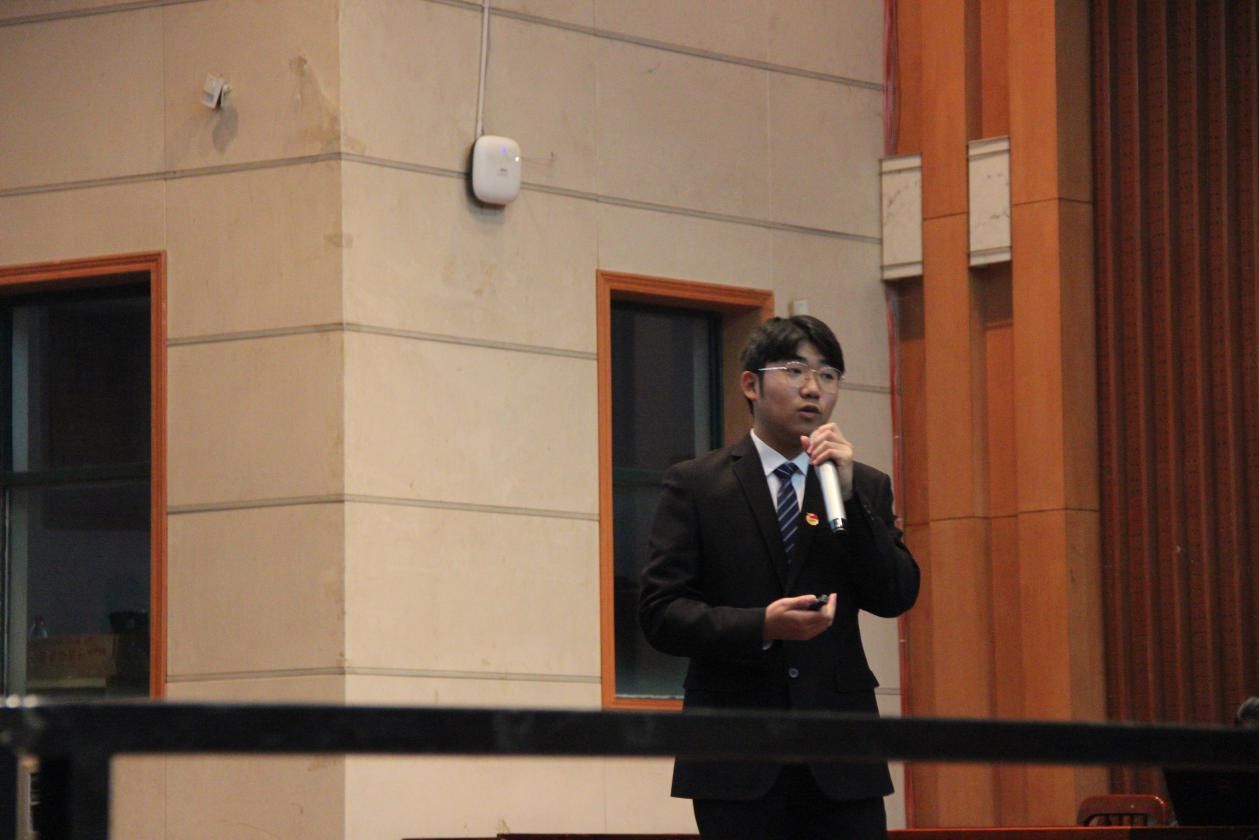 比赛伊始,由公安1902团支部风采展示,公安1902团支部积极开通本班的微博和公众号强化本支部成员思想引导,成员们分工明确,各司其职。接着是公安1904团支部代表余霈云介绍了公安1904团支部团日活动具备多样化、创新化、生活化、平台化四个特点,并播放了团成员集体录制的防艾视频。然后是公安1901团支部主讲人李兆洋展示了公安1901团支部的组织构成:思想督导和志愿者服务联络队。明确的班级制度、创新方式开展的团课等,无不彰显着团结向上的班风。之后的公安1905团支部主讲人黄雅明从组织架构、班级文化、团日活动三个方面展示了五班昂扬向上的青春活力。再后的星火燎原项目部代表人凌舷智,以照片和视频的形式展现了星火燎原团队联合校志协、院志协,有序开展了一系列意义重大的志愿者服务活动。最后公安1903团支部代表人许浩宇讲解了班徽、班服的设计理念,到场的三班同学统一着装班服,进行班级口号宣誓。