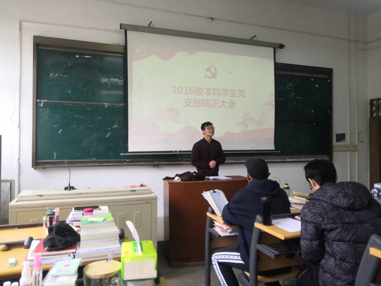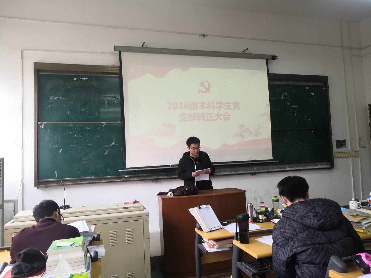 2019年12月18日上午9:00, 公司2016级本科员工党支部预备党员转正会议在电教楼201召开。2016级本科员工党支部全体党员参加会议,会议由党支部书记卓张鹏老师主持。