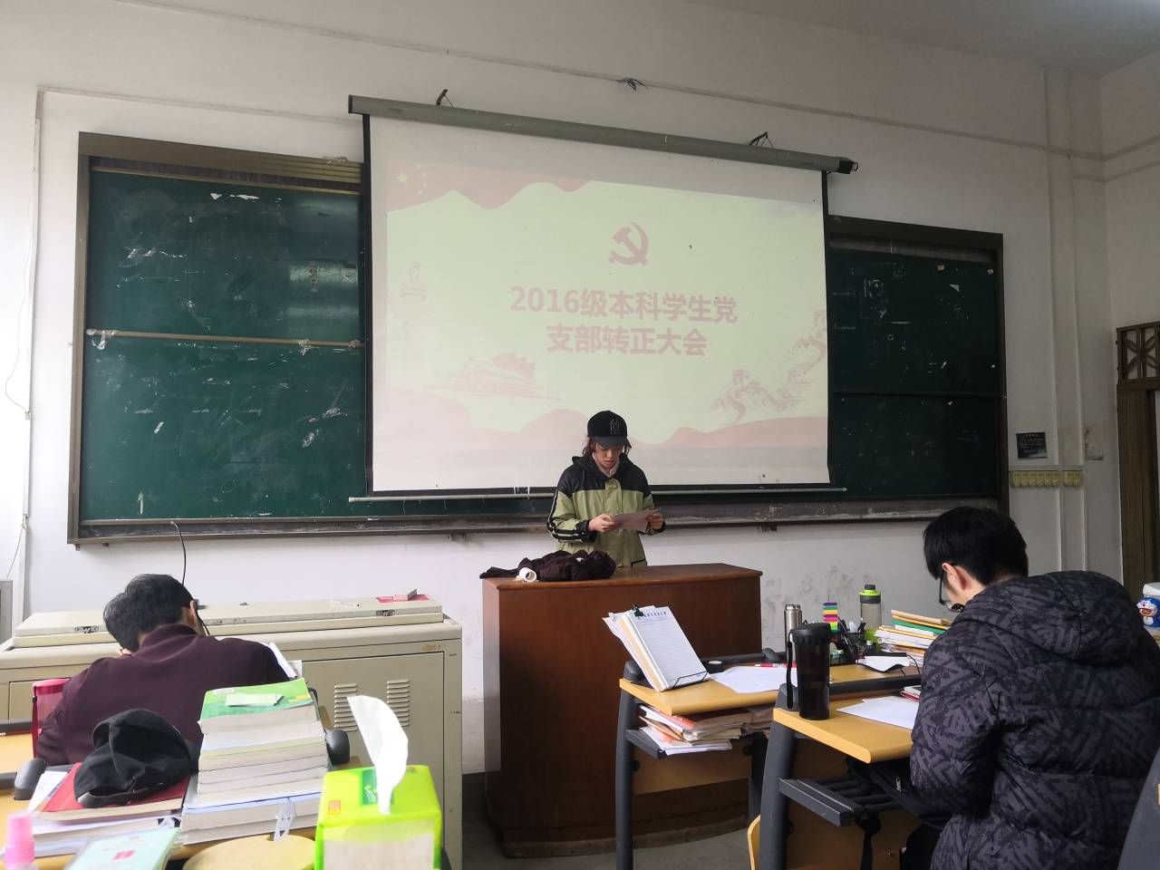 2019年12月23日上午10:00, 公司2016级本科员工党支部预备党员转正会议在电教楼201召开。2016级本科员工党支部全体党员参加会议,会议由党支部书记卓张鹏老师主持。