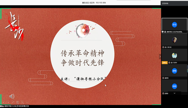 袅袅箫声袅袅风,潇湘水绿楚天空。第三位选手是来自潇湘寻根分队的队长罗卓。在比赛中,她围绕“青年的革命精神”这一主题,通过对长沙红色历史遗迹的考察,赞扬了革命时期青年的独立自强,歌颂了战疫期间当代青年的无私奉献。该小组还用湖南方言诗朗诵的方式号召青年一代珍惜大好时光,为中华民族伟大复兴而不懈奋斗。