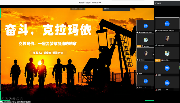 “你见过克拉玛依的春天吗?那是奋斗正当时。”第四位参赛选手是油城记忆分队的主讲人刘俊杰,采用视频结合演讲的形式,为我们展开了一幅石油之城克拉玛依的宏伟蓝图。在这片遥远却又富饶的土地上,虽然没有川流不息的车流,没有灯红酒绿的都市,但这里有着一大批勤劳的人民、一双双为梦想奋斗的双手。