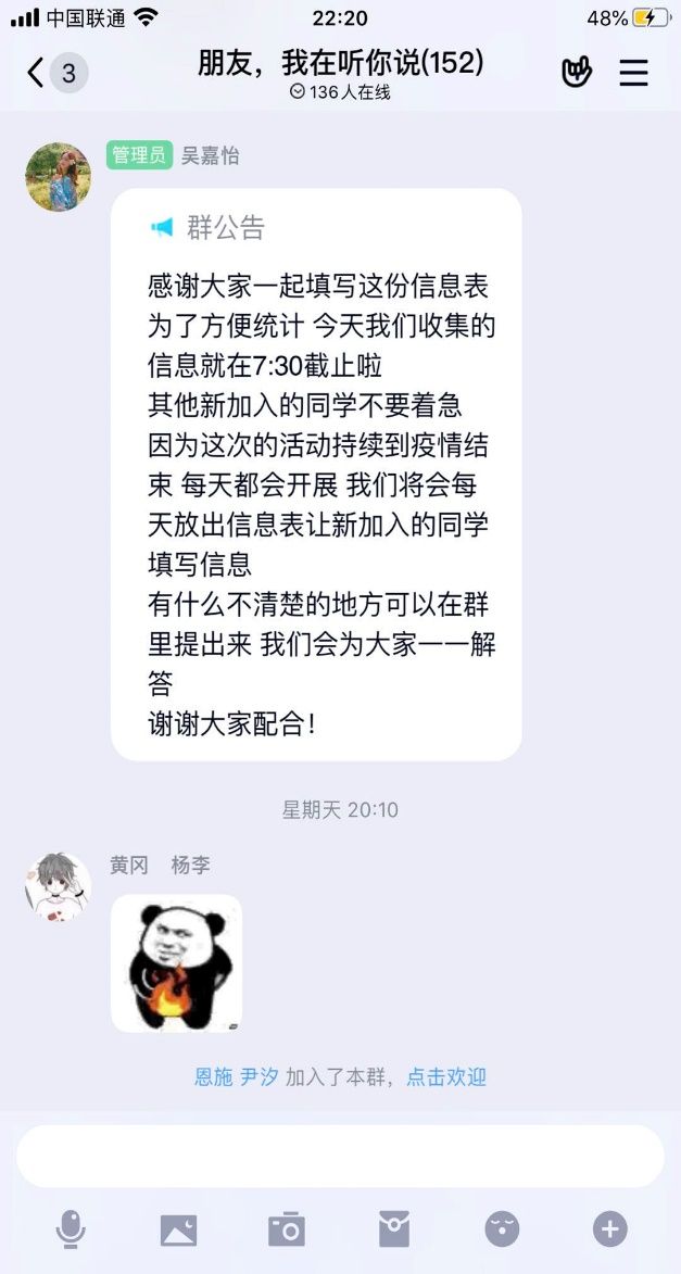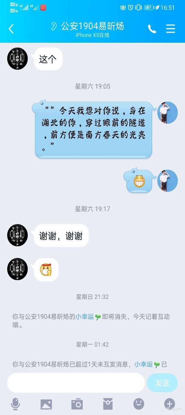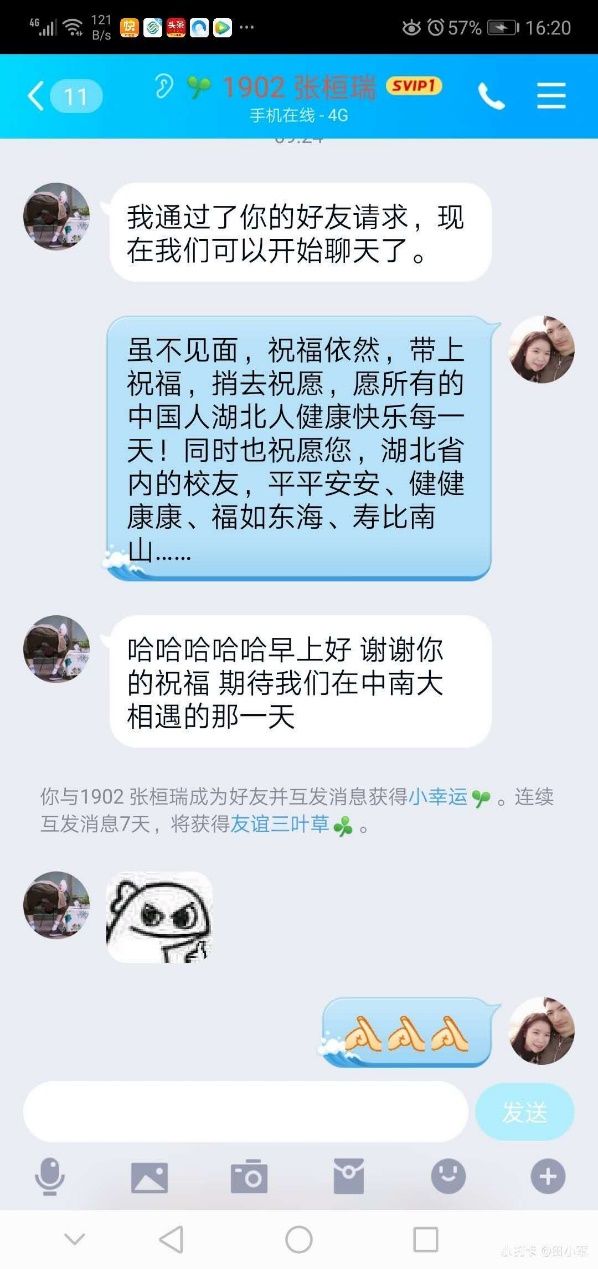 新闻网讯(通讯员 张振嘉 吴嘉怡 韩竞逸)在此抗击疫情时期,为响应学院团委关于在全院开展“战‘疫’‘刑’动”特别主题团日活动的通知,鼓舞公司师生抗疫斗志,公司志愿者协会在三月份特开展了为期18天的“湖北晚安计划”活动,通过QQ架起湖北省内与省外的沟通桥梁。由来自省外各地的同学与身处疫情中心的湖北同学一对一结对子,每日送去祝福与问候,使同学们居家也能感受到温暖,隔离病毒而不隔离爱。