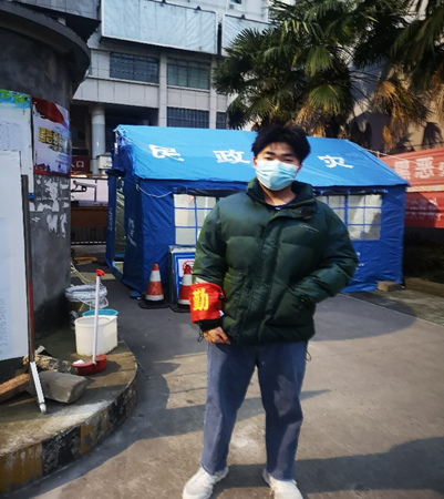 第二位优秀主讲人段彦博,身处疫情重灾区之一的黄冈。毫不畏惧的他主动与相关部门联系申请当志愿者,并被安排在鄂黄长江大桥卡口这一进城要道。他们24小时三班倒全天候值守于此,主要负责进出城交通管制、对进出城人员体温的监测、过往货物的查验等工作。舍小家为大家,是他所践行的志愿信念,而这次行动便是他对这一信念的最好印证。