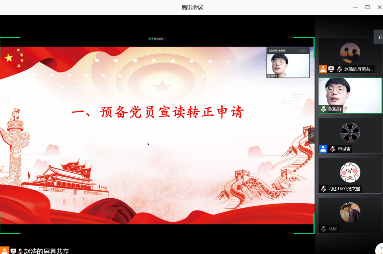 大会上张振群等40名预备党员向支部提出转正申请,汇报自己在预备期的表现、主要优缺点及在疫情期间与党组织联系情况和参加疫情志愿活动情况与今后努力方向。接下来卓张鹏、黄文菊两位入党介绍人在会议上介绍预备党员的表现,并表明同意按期转正。
