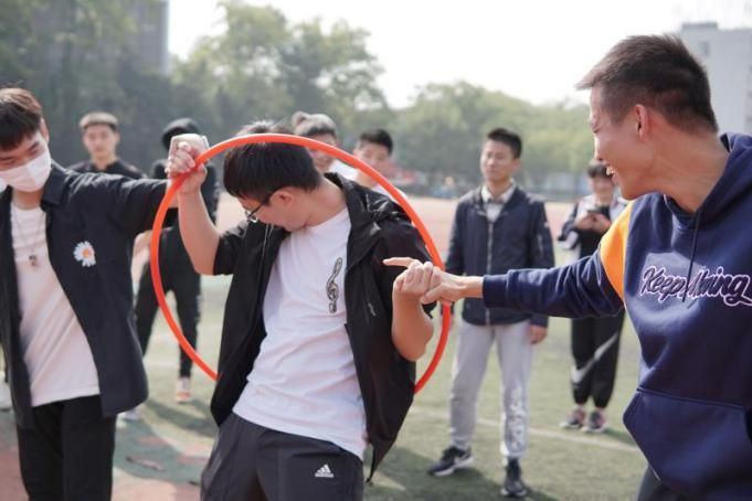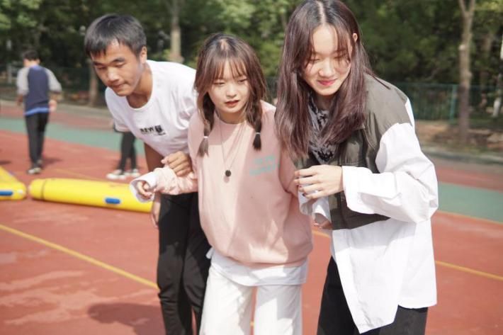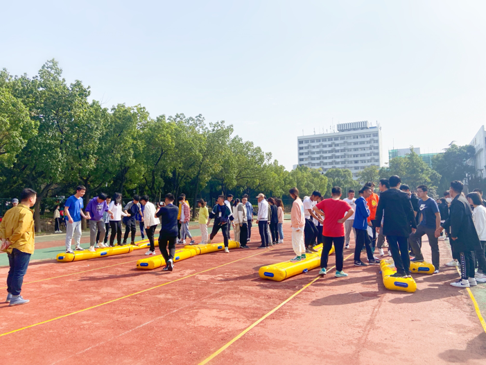 下午12时55分,活动主持人郭青川老师召集同学们集合。下午13时,各小组集结完毕,郭老师宣布阳光运动月启动仪式暨“趣味团学,玩转校园”团学组织素质拓展活动正式开始。活动伊始,郭青川老师用一个名为“贪吃蛇”的小游戏调动起了同学们的积极性,让同学们通过猜拳的形式活动起来,猜拳输的人排在赢者身后,最终大家围成了一个大圈,互相捏肩,你来我往,充分体会到了友爱互助的温馨感。而后郭青川老师又通过一个数字抱团的小游戏让同学们跑动起来,达到了热身的效果。仅仅一个热身活动,同学们的积极性就已被调动起来,大家脸上都露出了愉悦的笑容。正如郭青川老师所言,此次活动大家要忘记身份,忘记年龄,忘记性别,充分享受运动所带来的愉悦和满足。