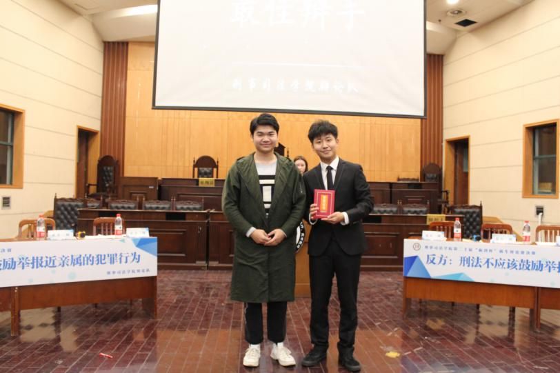 新闻网讯(员工记者 高天乐 凌司阳 熊子青)2020年11月1日晚7时,欢迎来到公赌船jcjc555线路第二十届“砺剑杯”新生辩论赛总决赛暨颁奖典礼于文泰楼模拟法庭(一)正式打响。本次比赛由公司辩论队的童楚惟、王彦懿主持。今年,“砺剑杯”迎来了第二十批参赛选手,上百人的热切关注,50多位辩手的精心准备,经过海选、初赛、半决赛的层层选拔,共有两支队伍脱颖而出,站在了决赛的舞台,他们围绕“刑法应该/不应该鼓励举报近亲属的犯罪行为”这一当下热点话题展开本届辩论赛的巅峰之战。公司大一新生、其他学院辩论队以及武汉大学校辩论队、中南民族大学管理学院辩论队积极参与本次比赛活动。