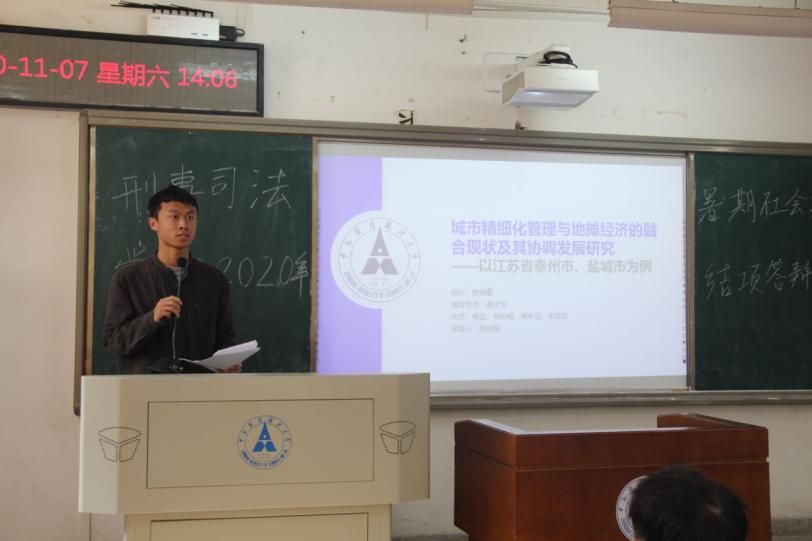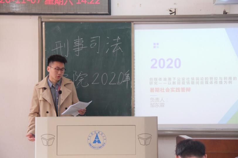 在现场答辩环节中,各位答辩人向评审与同学们展示了城市精细化管理下的地摊经济、自媒体浪潮下的公安社情舆论、疫情下紧急状态法律体系的完善、“枫桥式”公安的数字建设、突发事件下的“智慧警务”、基于GSS数据的公众与警察关系共六个方面的暑期社会实践研究成果。殷瑞壑团队以疫情下严峻的国内形势,结合国家应急政策,通过文献研究、问卷调查与访谈等多种形式,展示了在城市精细化管理下,地摊经济在国民经济发展权重中的历史沿革,并提出了地摊经济管理的优化方案。国泰民安队则以突发公共事件为背景,对“智慧警务”的运行现状进行实证研究,结合当下数据化管理趋势,开展详细的数据调查,并提出“智慧警务”建设的优化方案。其他团队也都通过详细的PPT、流利的答辩演说、精彩的活动过程记录来完成了小组的结项答辩,对新时代下社会治安综合治理做出了深刻的研究与探讨。