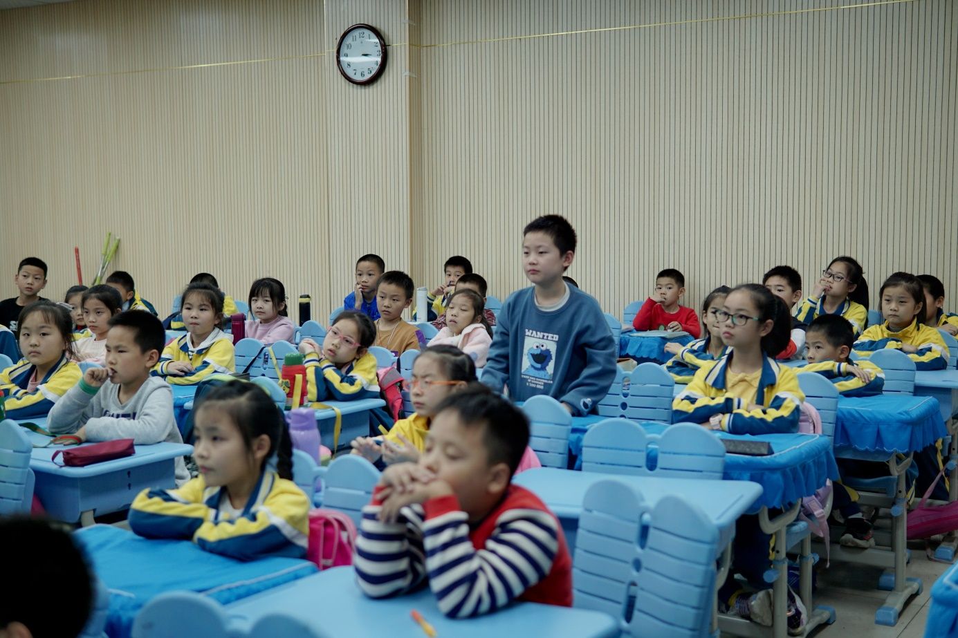 经过短暂步行,我们准时到达光谷第五小学。“哥哥姐姐们好!老师好!”。教室里的孩子们给哥哥姐姐送来冬日里温暖的问候。紧接着,小老师在简短的自我介绍后便开始了这次的“星火课堂”。