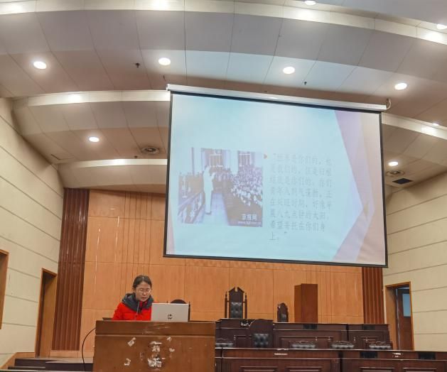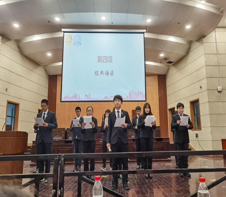 在致辞结束后,经典诵读的同学代表们走上讲台,向同学们诵读了马克思的经典著作:《共产党宣言》。同学代表们精神抖擞,气势昂扬,展现出了心中的自信,同学们听得十分入迷,并适时致以热烈的掌声。