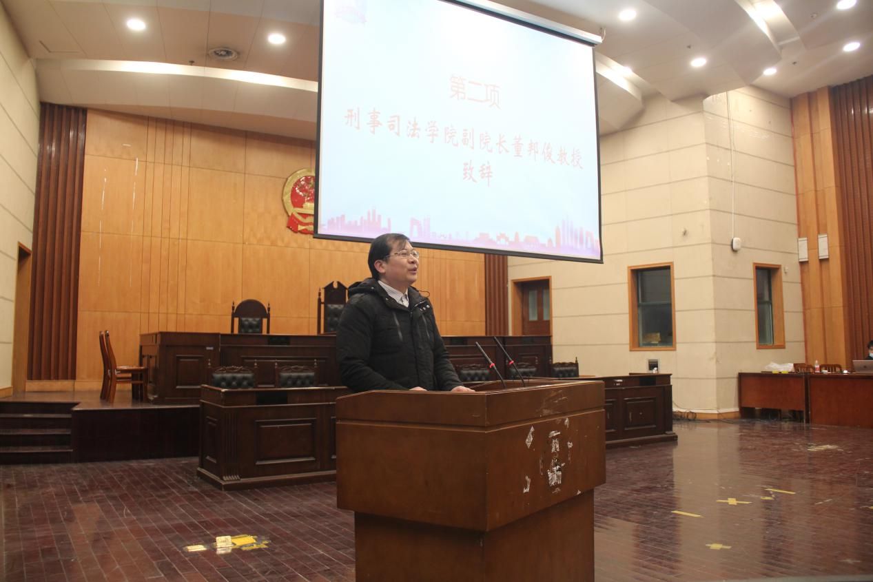 新闻网讯(员工记者 熊子青 凌司阳 高天乐)为全面贯彻落实党和国家在大学教育方面的方针政策和指示精神,引导和鼓励员工努力学习、奋发进取,造就德、智、体、美、劳全面发展的社会主义建设者和接班人,公司于12月17日在文泰楼模拟法庭一举行了2020年年度总结表彰大会。欢迎来到公赌船jcjc555线路副经理董邦俊教授、公司党委副书记万里雪、院学办主任陆薇老师、院分团委书记郭青川老师以及各年级辅导员莅临本次活动。