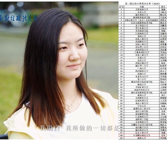 (图为党萌及全国百佳心委公示名单)