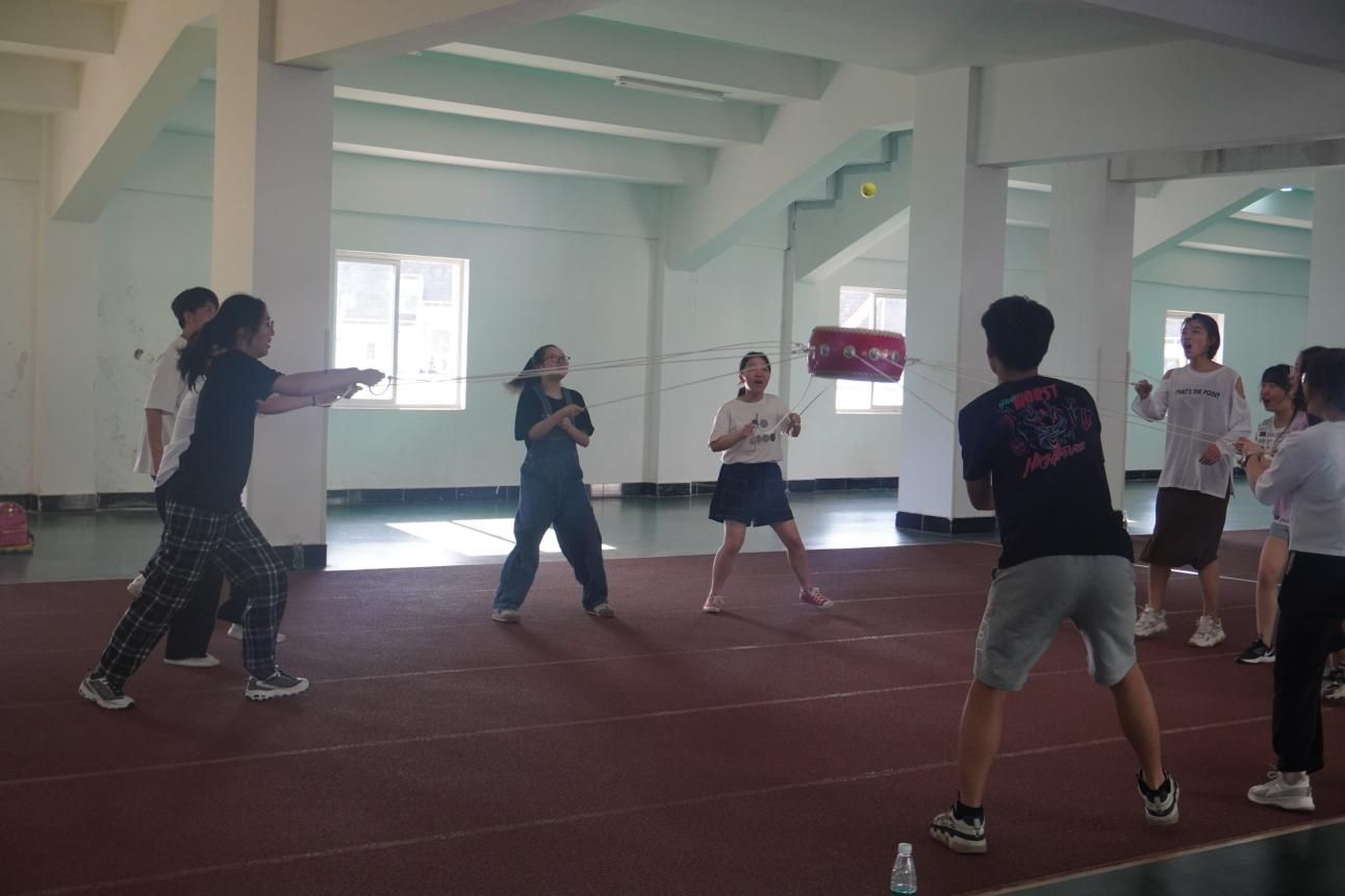 经过了几个环节的磨合,同学们迎来终极挑战环节“鼓动人心”,各小组成员手持牵拉绳撑起鼓面,在3分钟以内计算颠球次数,以颠球多者为胜。各小组在练习时齐心配合、通力协作,不断寻找问题并协调改进,正式挑战时都超越了起初定下的目标,其中第四组更是以88次的优异成绩获得了第一名。在这场挑战中,各小组同学对彼此的印象都更加深刻,也在不断协商、沟通与调整中凝聚了彼此的力量。