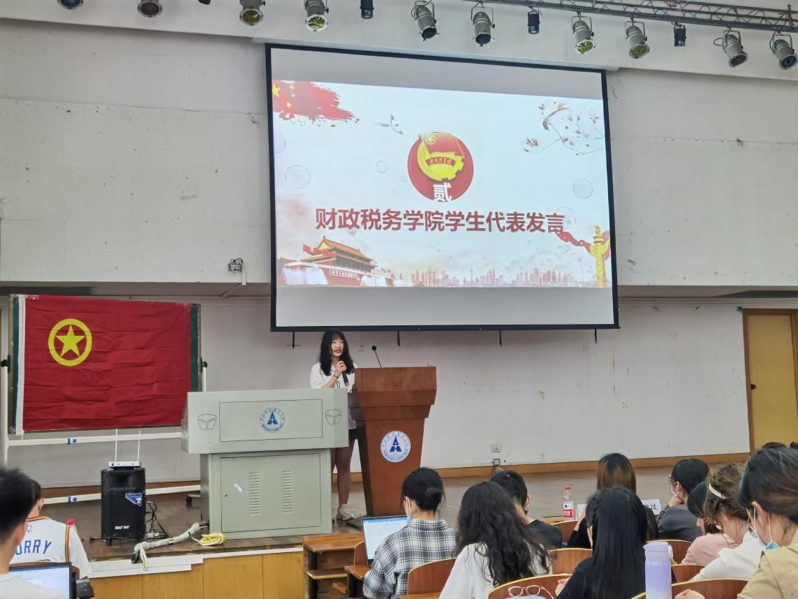 演唱结束后,财政税务学院员工代表葛竹欣发表了演讲,她提到:“为了让广大团干与员工深入学习,贯彻党的十九大精神与精神,高举中国特色社会主义精神,学校开办青年马克思主义培训班是非常有意义的。要用马克思主义以及习近平新时代中国特色社会主义新时代思想作为契机,引领提高员工骨干的思想水平,充分激发创新能力与创造能力。”青年团员,要用短暂的青春去学习无穷的智慧,通过实践去完成向一名合格的马克思主义者的蜕变,为祖国的繁荣昌盛贡献自己的一份力量。