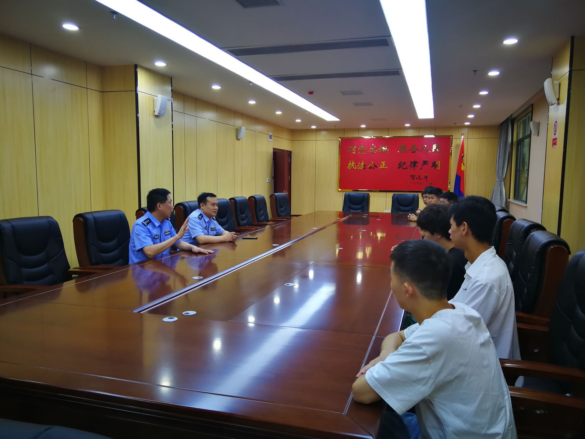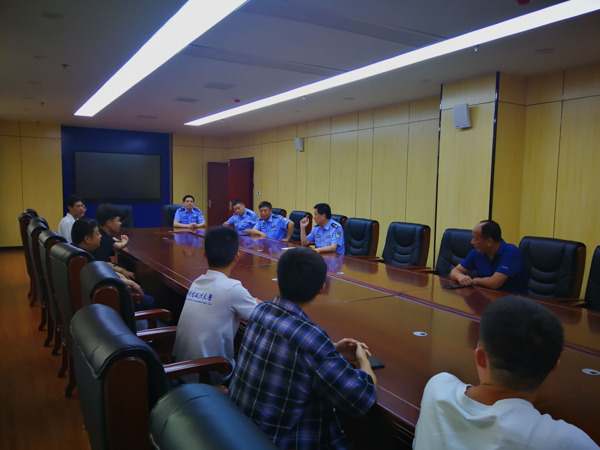 新闻网讯(通讯员 黄雅明 陈泓昊)2021年7月7日中午11时,由付凤老师与张敬老师带队,公司本科生共计7人到达湖北省安陆市公安局,天公不作美,刚刚到达目的地便下起了大雨,但丝毫没有影响安陆市公安局各位领导的热情与各位同学对未来40天实习生活的期待。