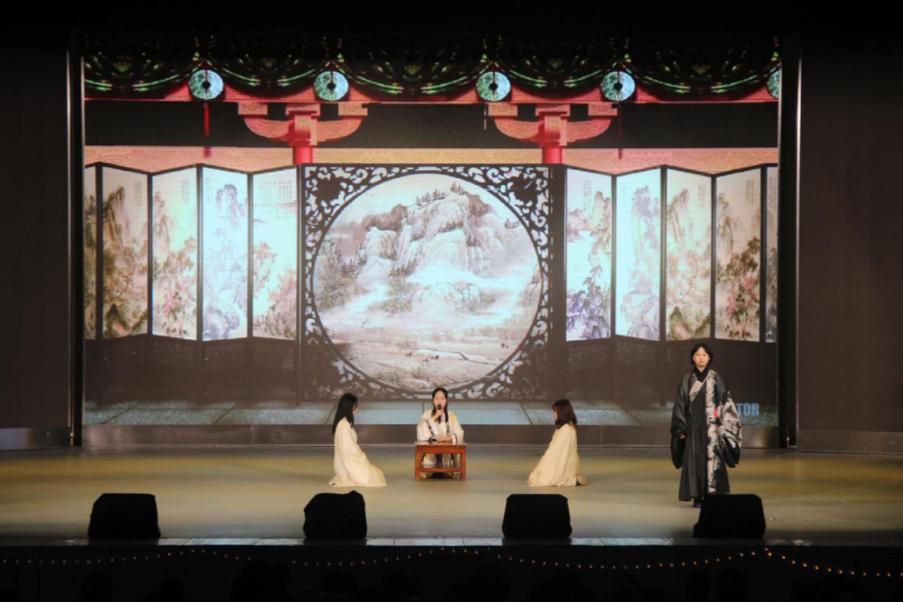 献礼百年,颂我中华。大赛伊始,新闻学院为大家带来了暖唱曲目《你好未来》,铿锵有力,动人心神的演唱,点燃了全场观众的满腔热血。第一组带来的是作品名为《半生烟华,半世落花》,拉开了主题“典正雅音”的序幕。本组为大家展示了李清照一生的身世浮沉,带领大家在一首首诗词中,感受王朝没落之时李清照的心境变化,感受那一半温情,一半伤情。第二组的作品名为《说禹贡》,禹敷土,随山刊木,奠高山大川,本组用原创内容,沉浸式演绎,带人领略古人的智慧,感受先贤的魄力。第三组带来的篇目是《审判》,本组两位选手用默契的表演,向大家展现了医者内心若填满私欲,即使医术高明,也终将迎来审判。