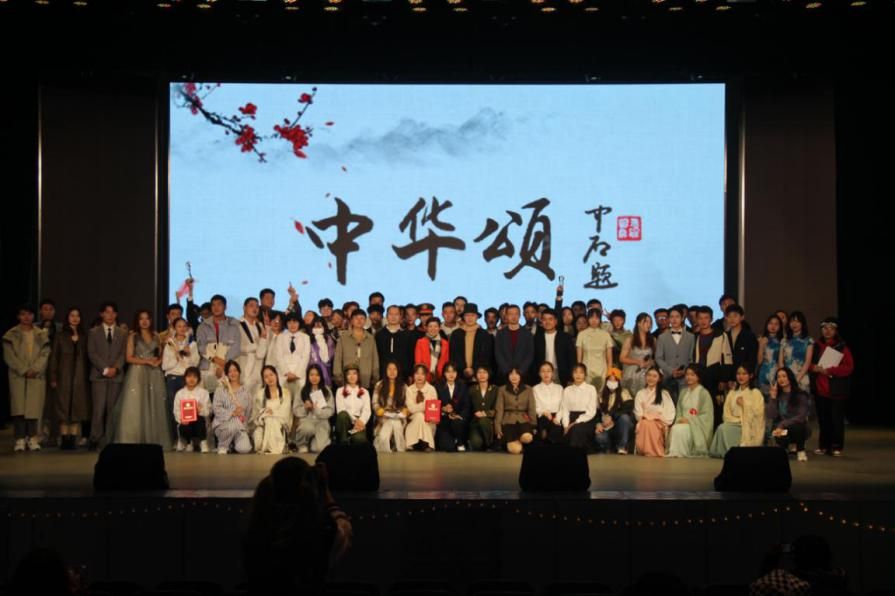 随着评委打分结束,叶建恩老师为选手们做出了专业点评,并称赞道“我今天来是享受了一番”,对选手们的表现给予了肯定,吴玉兰教授也对选手们的表现做出了高度评价。最终,在九组参赛队伍中,第八组以《扎根》斩获冠军,第六组以《永不消逝的声音》荣获亚军,第九组以《星河长明》荣获季军,第一组、第二组、第三组、第四组、第五组、第七组荣获优秀奖,第七组荣获最佳人气奖。颁奖结束,全体参赛选手以及工作人员上台合影留念。第七届“中华颂”朗诵大赛决赛最终落下帷幕。