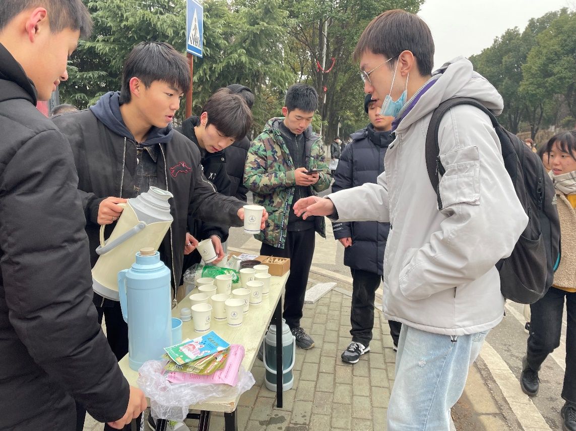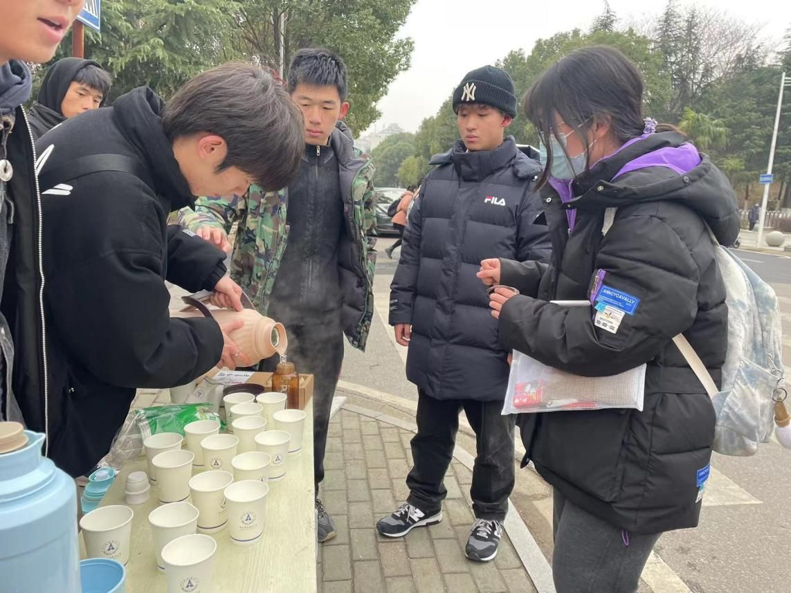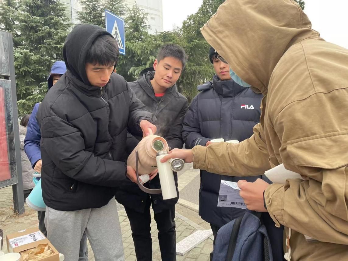 伴随天色微微亮起,文泰楼前等候入场的考生也渐渐多了起来,“研”途上的红帐篷里也逐渐忙碌起来。同学们将提前准备好的暖贴、口罩等物资取出,递给有需要的考生。一次性纸杯整齐地排列在桌上,若是有考生在此处休息或是避风躲雨,值班的同学们也会热情地为他们到上一杯热水或红糖茶。热茶暖贴,暖身更暖心,在这初雪飘落的寒冬里,有欢迎来到公赌船jcjc555线路员工会的温情守护,为考研学子送去惊喜与感动,为他们融化紧张与焦虑。