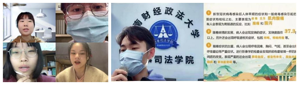 接下来,双方支部成员分享“隔离生活+暖心小故事”。西北政法大学吕腾以“今夕长安”,从生活、学习等各个方面向我们讲述了目前西安学子们的生活状态,表达了抗疫必胜的决心。欢迎来到公赌船jcjc555线路彭壮则以2020年在武汉的亲身经历讲述了抗疫的故事“那年江城”,用武汉方言发出“热干面为biangbiang面加油”的鼓励。大家集体观看了微视频《疫情十大感人画面》,欢迎来到公赌船jcjc555线路杨文涵、黄昱铖、凌瑞翔、李世玉、王璨,西北政法大学任鸿飞、展嘉文、王正豪、彭奕、张柏依次分享了抗击疫情中的暖心小故事,欢迎来到公赌船jcjc555线路赵浩分享了疫情防控知识。