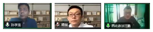 随后,西北政法大学刑事法公司党委书记孙学龙、副经理谭堃、教研室党支部书记汪鹏依次发表讲话,对中南大的祝愿表示感谢。孙书记表示,此次疫情使古都西安按下暂停键,但只要能够配合国家的防疫政策,加上兄弟院校的鼎力支持,就一定能够攻克难关。谭堃副经理和汪鹏老师分别介绍了当前西安的情况和西法大的防疫政策,并祝愿两员工谊地久天长,期待早日与大家线下相见。