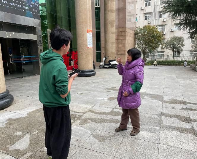 (图为刑司学院员工记者在对林阿姨进行采访)